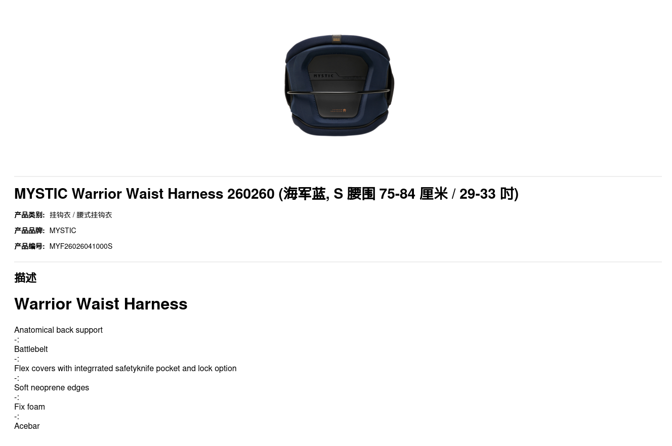 MYSTIC Warrior Waist Harness 260260