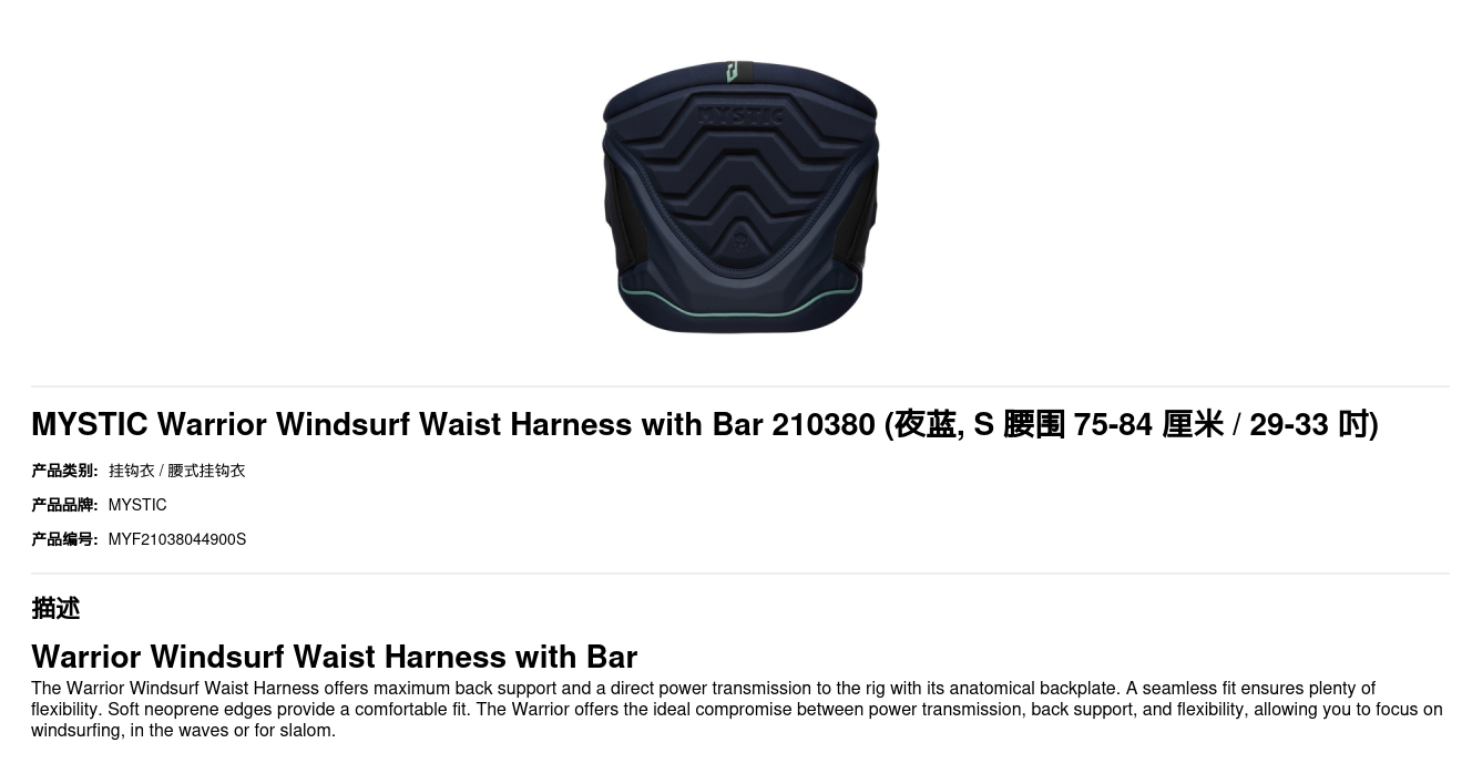 MYSTIC Warrior Windsurf Waist Harness with Bar 210380