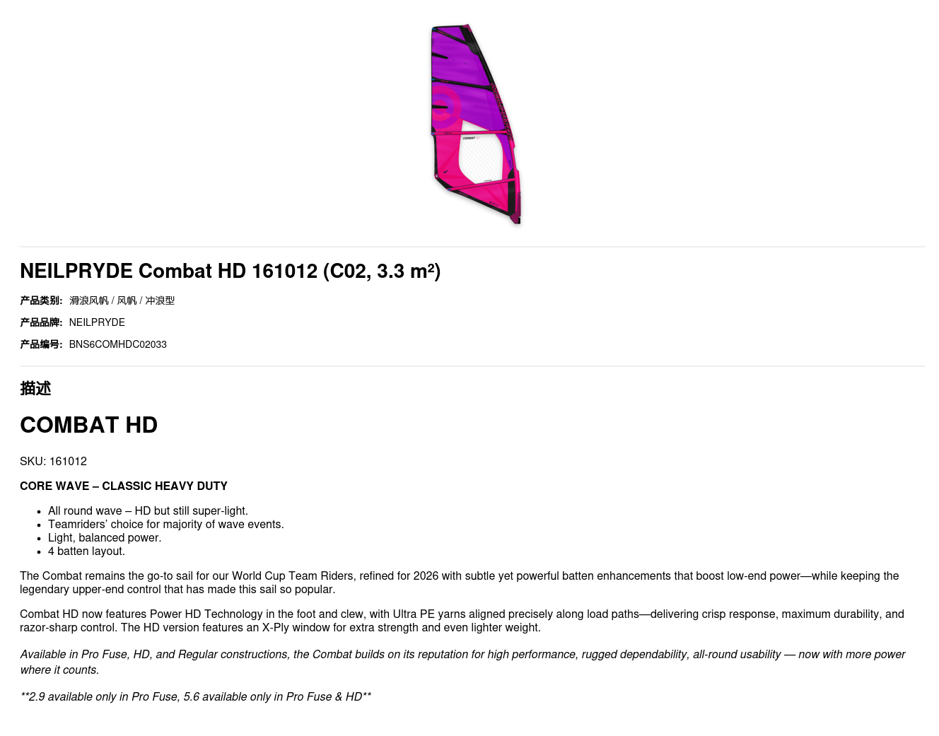 The Combat remains the go-to sail for our World Cup Team Riders, refined for 2026 with subtle yet powerful batten enhancements that boost low-end power—while keeping the legendary upper-end control that has made this sail so popular.