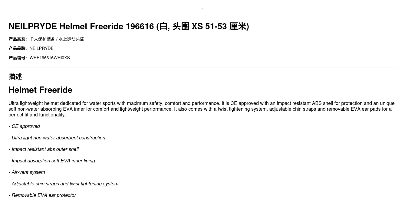 Ultra lightweight helmet dedicated for water sports with maximum safety, comfort and performance. It is CE approved with an impact resistant ABS shell for protection and an unique soft non-water absorbing EVA inner for comfort and lightweight performance. It also comes with a twist tightening system, adjustable chin straps and removable EVA ear pads for a perfect fit and functionality.