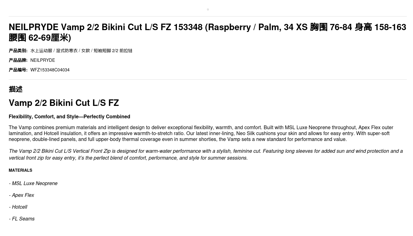 NEILPRYDE Vamp 2/2 Bikini Cut L/S FZ 153348