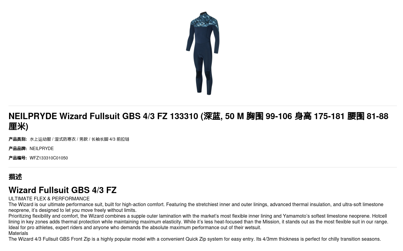 HOME / PRODUCTS / NEILPRYDE Wizard Fullsuit GBS 4/3 FZ 133310