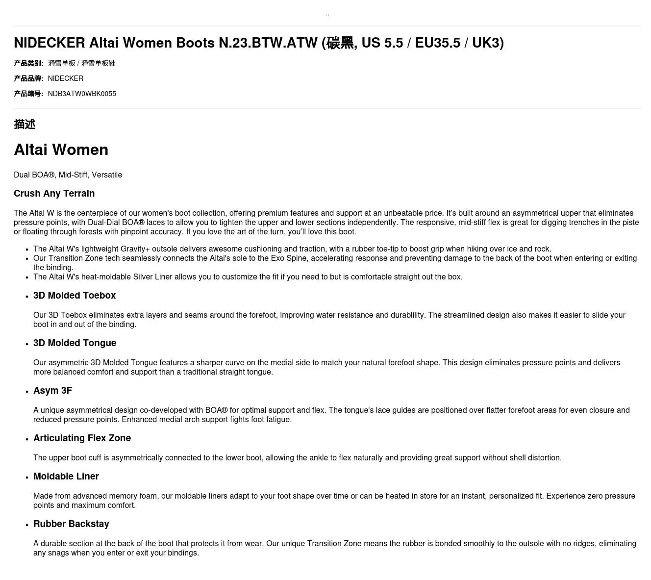 - Our Transition Zone tech seamlessly connects the Altai's sole to the Exo Spine, accelerating response and preventing damage to the back of the boot when entering or exiting the binding.