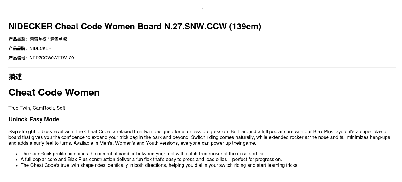 NIDECKER Cheat Code Women Board N.27.SNW.CCW