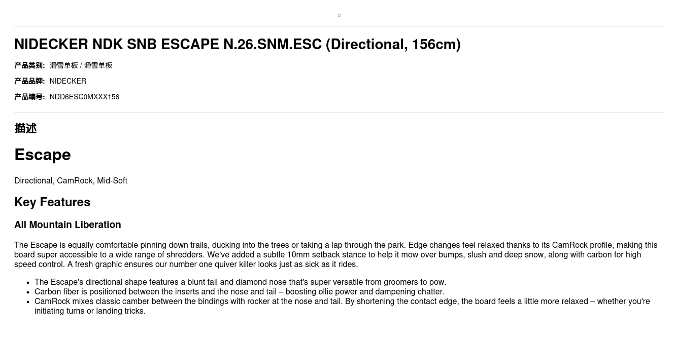 - The Escape's directional shape features a blunt tail and diamond nose that's super versatile from groomers to pow.