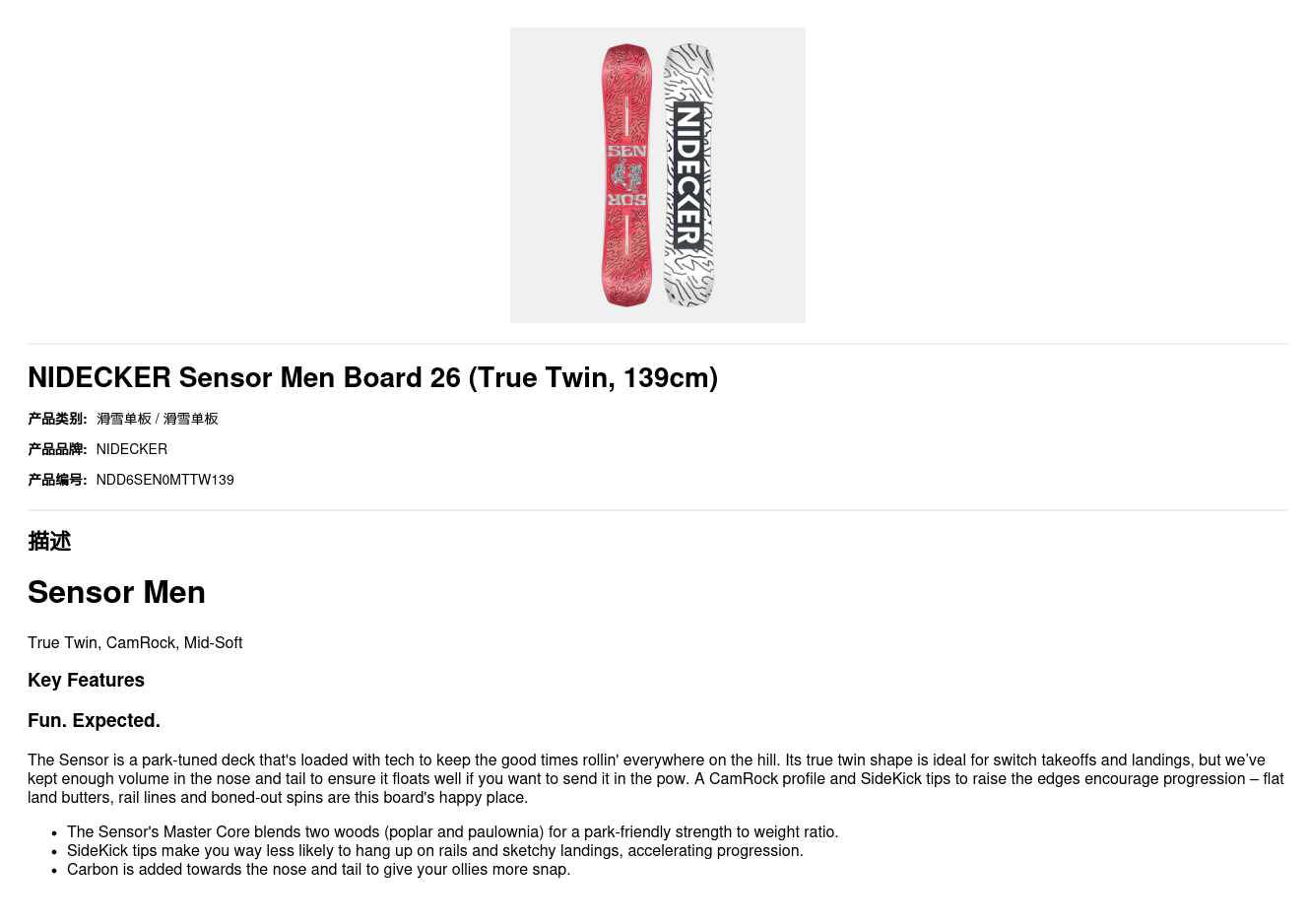The Sensor is a park-tuned deck that's loaded with tech to keep the good times rollin' everywhere on the hill. Its true twin shape is ideal for switch takeoffs and landings, but we’ve kept enough volume in the nose and tail to ensure it floats well if you want to send it in the pow. A CamRock profile and SideKick tips to raise the edges encourage progression – flat land butters, rail lines and boned-out spins are this board's happy place.