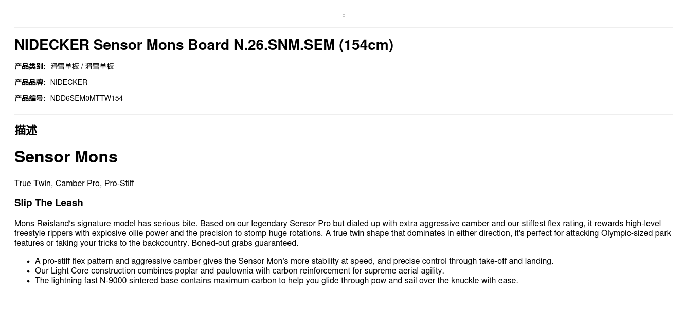 - A pro-stiff flex pattern and aggressive camber gives the Sensor Mon's more stability at speed, and precise control through take-off and landing.