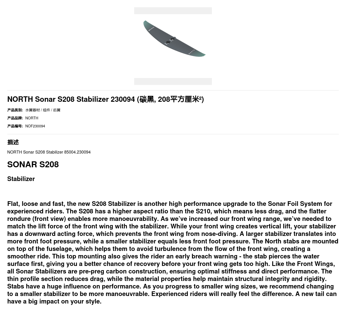 NORTH Sonar S208 Stabilizer 230094