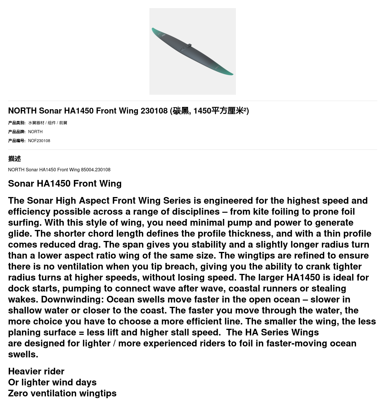 NORTH Sonar HA1450 Front Wing 85004.230108