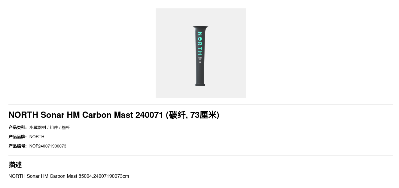 NORTH Sonar UHM Carbon Mast 240071