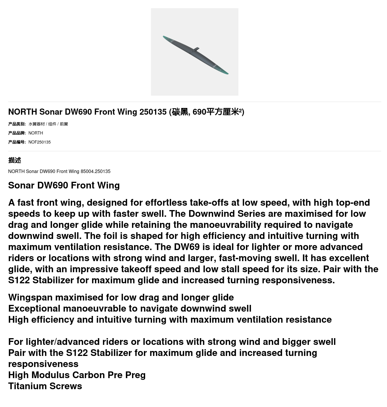 NORTH Sonar DW690 Front Wing 250135