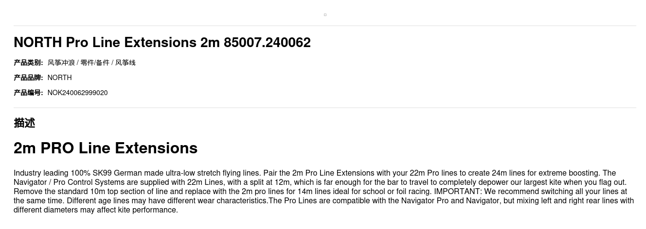 Industry leading 100% SK99 German made ultra-low stretch flying lines. Pair the 2m Pro Line Extensions with your 22m Pro lines to create 24m lines for extreme boosting. The Navigator / Pro Control Systems are supplied with 22m Lines, with a split at 12m, which is far enough for the bar to travel to completely depower our largest kite when you flag out. Remove the standard 10m top section of line and replace with the 2m pro lines for 14m lines ideal for school or foil racing. IMPORTANT: We recommend switching all your lines at the same time. Different age lines may have different wear characteristics.The Pro Lines are compatible with the Navigator Pro and Navigator, but mixing left and right rear lines with different diameters may affect kite performance.