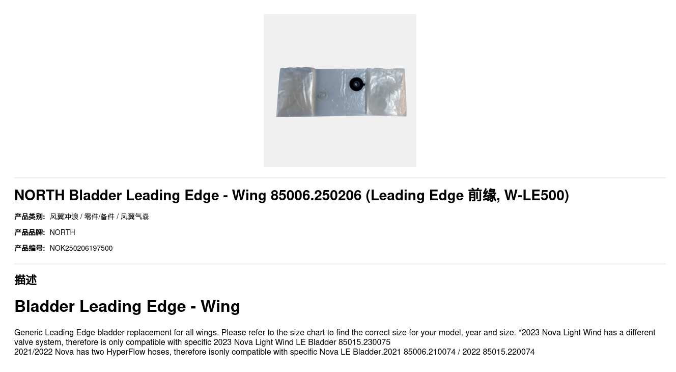 NORTH Bladder Leading Edge - Wing 85006.250206
