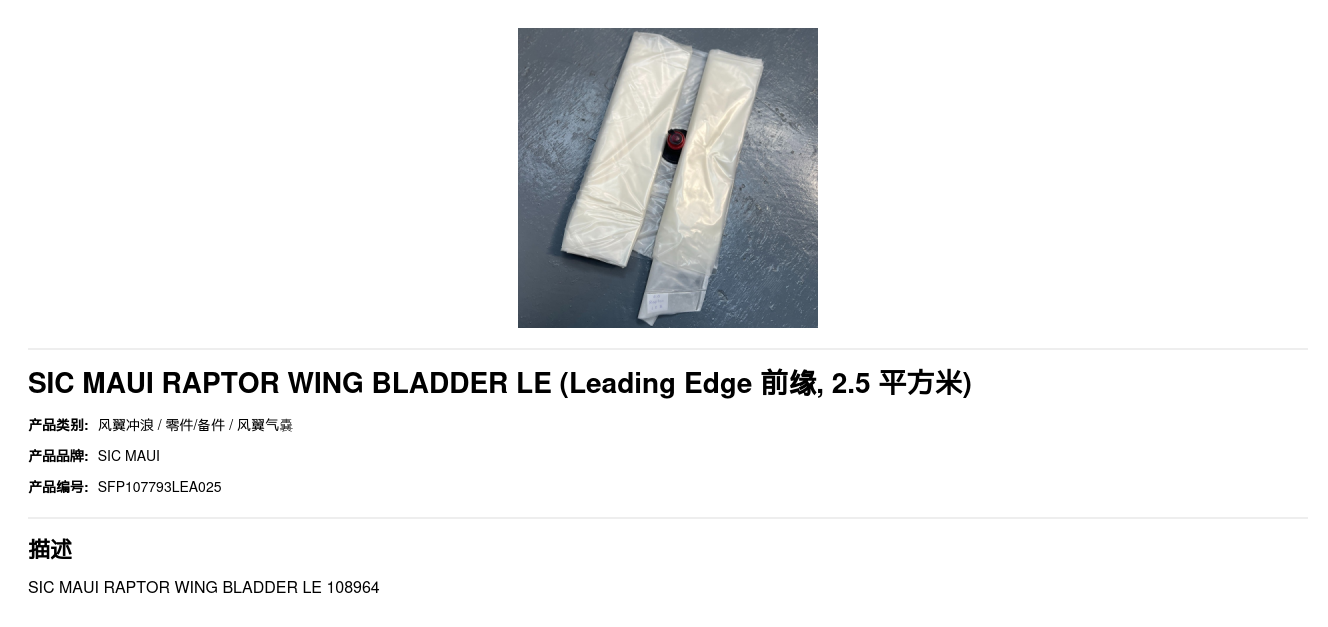 SIC MAUI RAPTOR WING BLADDER LE 108964