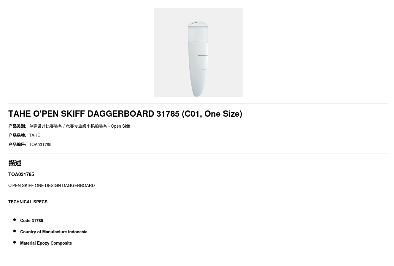 TAHE O'PEN SKIFF DAGGERBOARD 31785