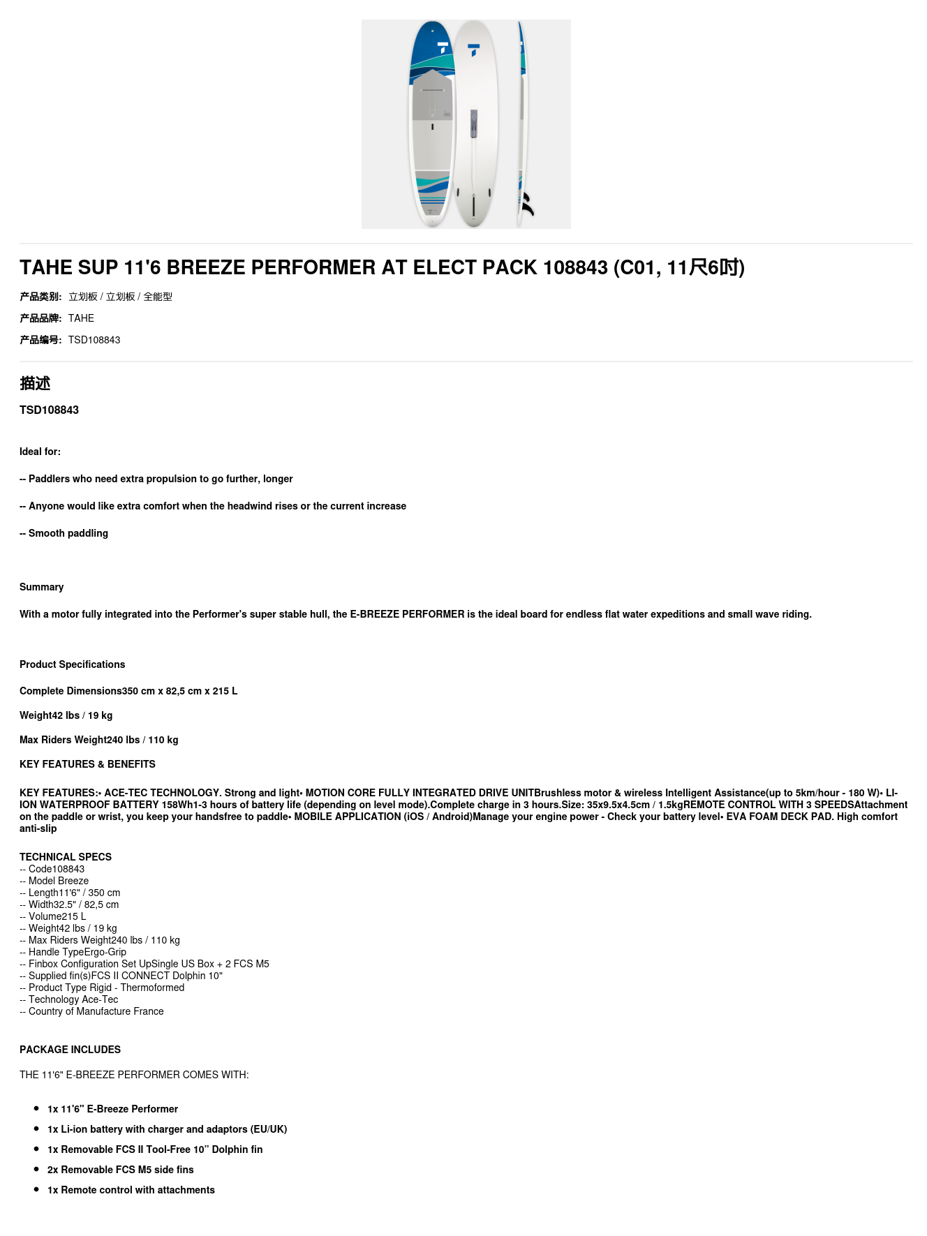 TAHE SUP 11'6 BREEZE PERFORMER AT ELECT PACK 108843