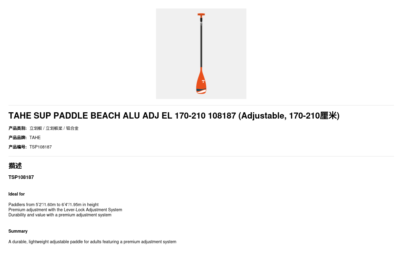 TAHE SUP PADDLE BEACH ALU ADJ EL 170-210 108187