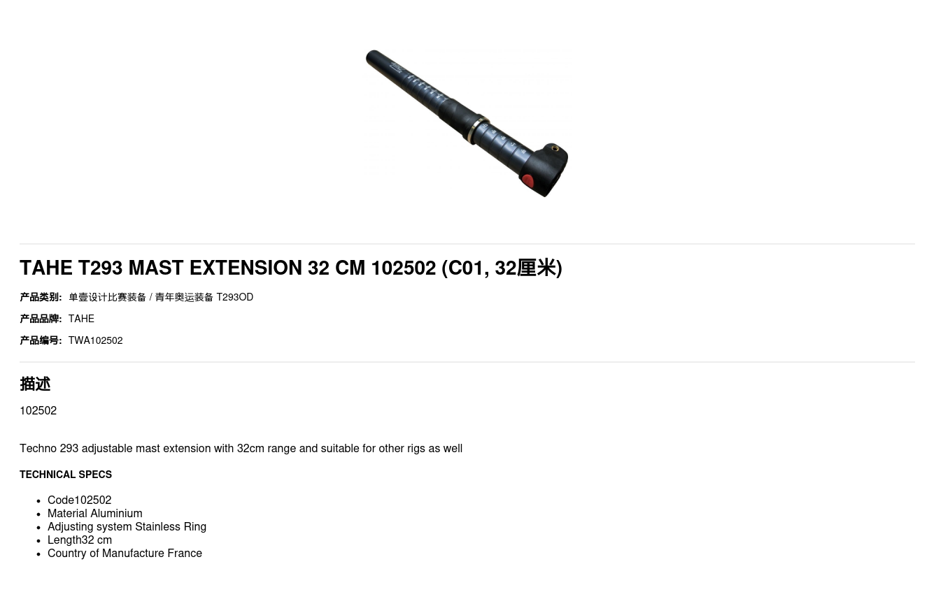 TAHE T293 MAST EXTENSION 32 CM 102502