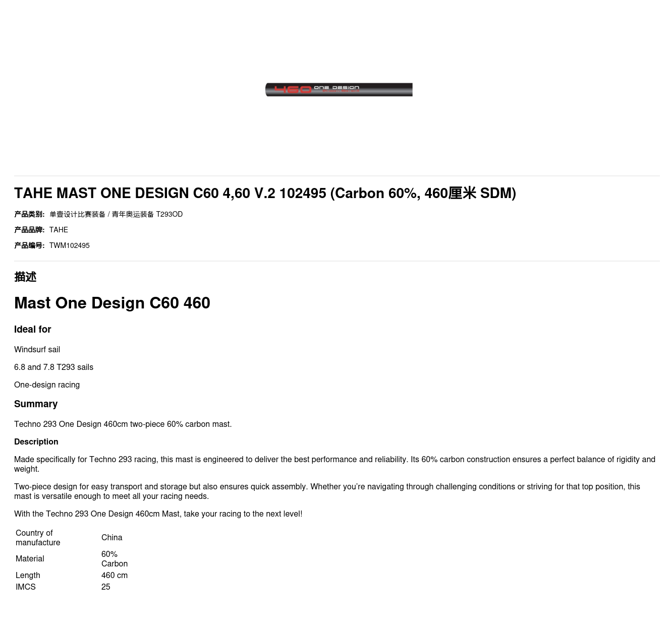 TAHE MAST ONE DESIGN C60 4,60 V.2 102495