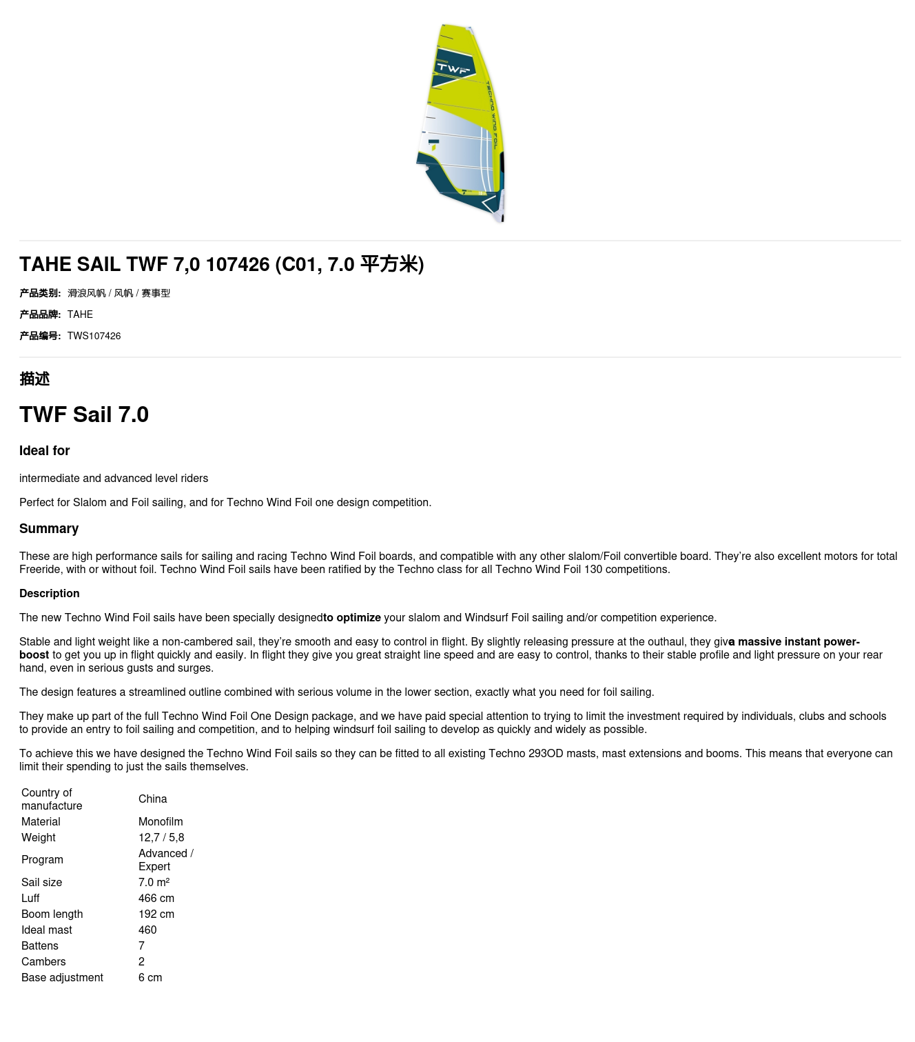 Perfect for Slalom and Foil sailing, and for Techno Wind Foil one design competition.