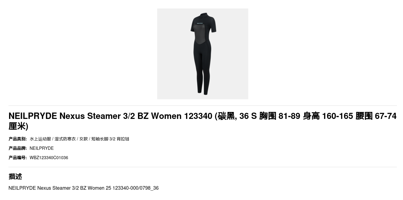 | 尺寸 | 36 S 胸围 81-89 身高 160-165 腰围 67-74厘米, 38 M 胸围 86-94 身高 165-170 腰围 72-79厘米, 40公升 胸围 91-99 身高 170-175 腰围 77-84厘米 |