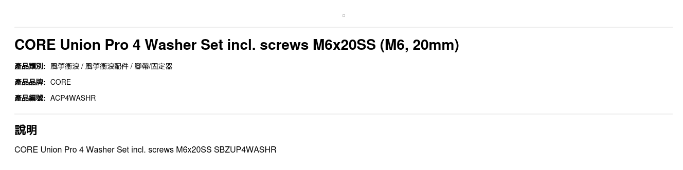 CORE Union Pro 4 Washer Set incl. screws M6x20SS SBZUP4WASHR