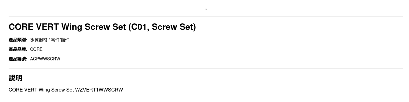 CORE VERT Wing Screw Set WZVERT1WWSCRW