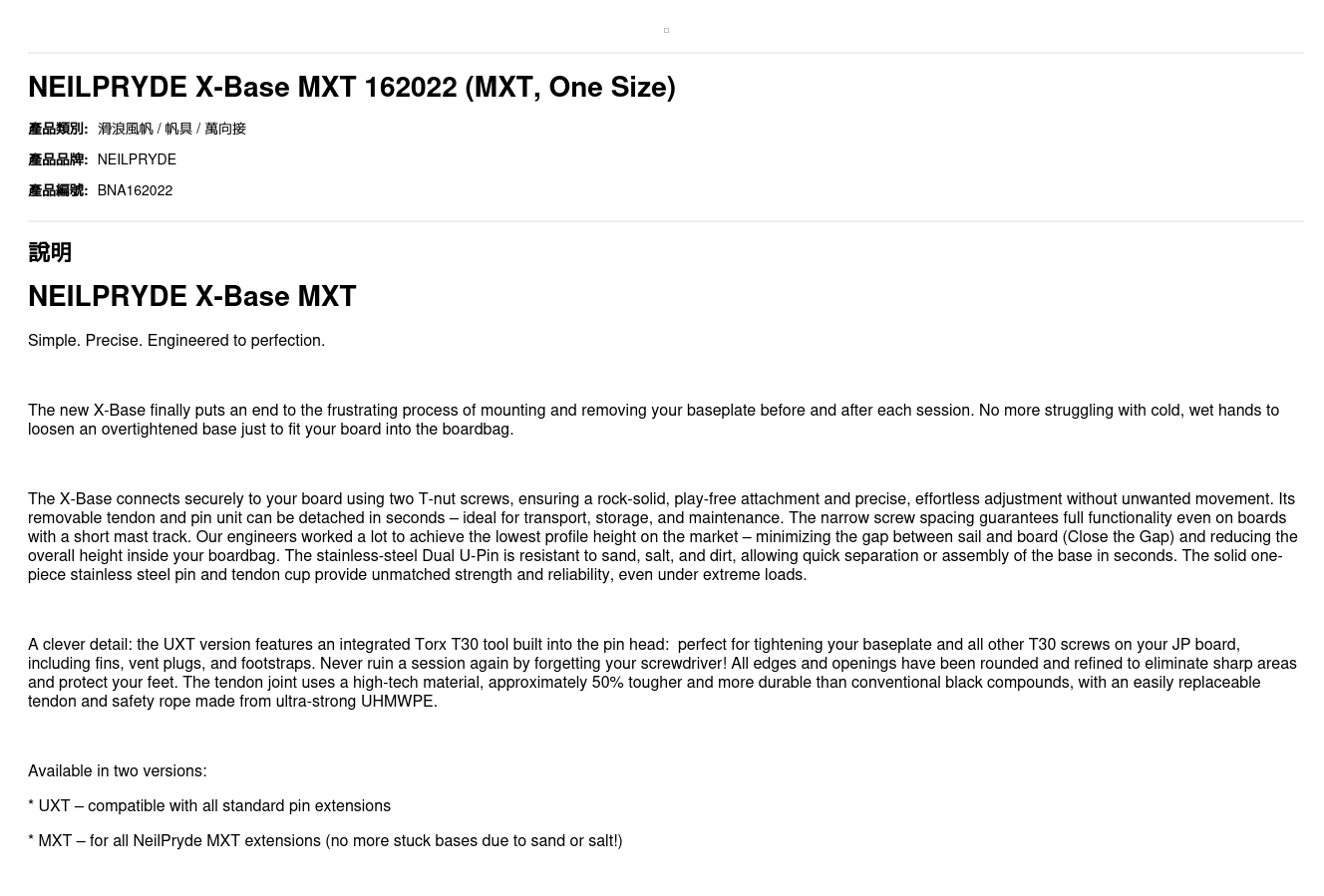 * MXT – for all NeilPryde MXT extensions (no more stuck bases due to sand or salt!)