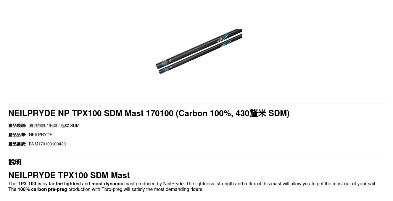 NEILPRYDE NP TPX100 SDM Mast 170100