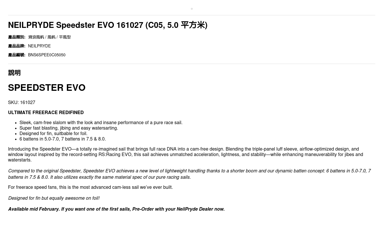 HOME / PRODUCTS / NEILPRYDE Speedster EVO 161027