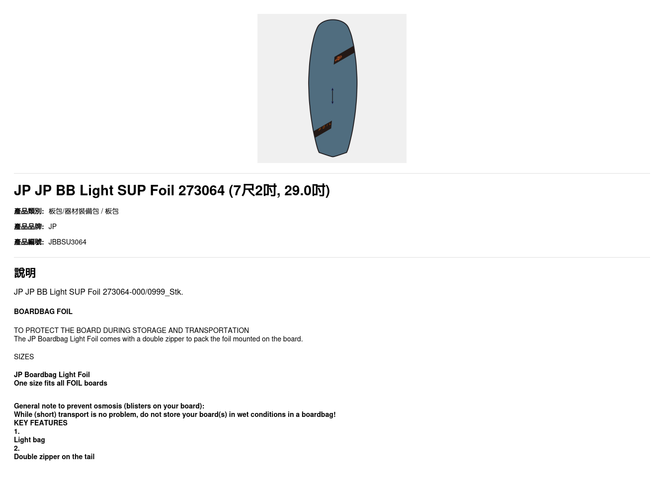 The JP Boardbag Light Foil comes with a double zipper to pack the foil mounted on the board.