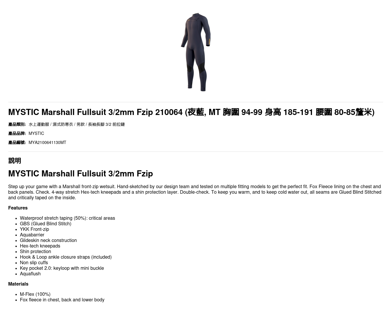 尺碼 S 胸圍 89-94 身高 170-175 腰圍 75-80釐米, MS 胸圍 94-99 身高 170-175 腰圍 80-85釐米, M 胸圍 94-99 身高 176-182 腰圍 80-85釐米, MT 胸圍 94-99 身高 185-191 腰圍 80-85釐米