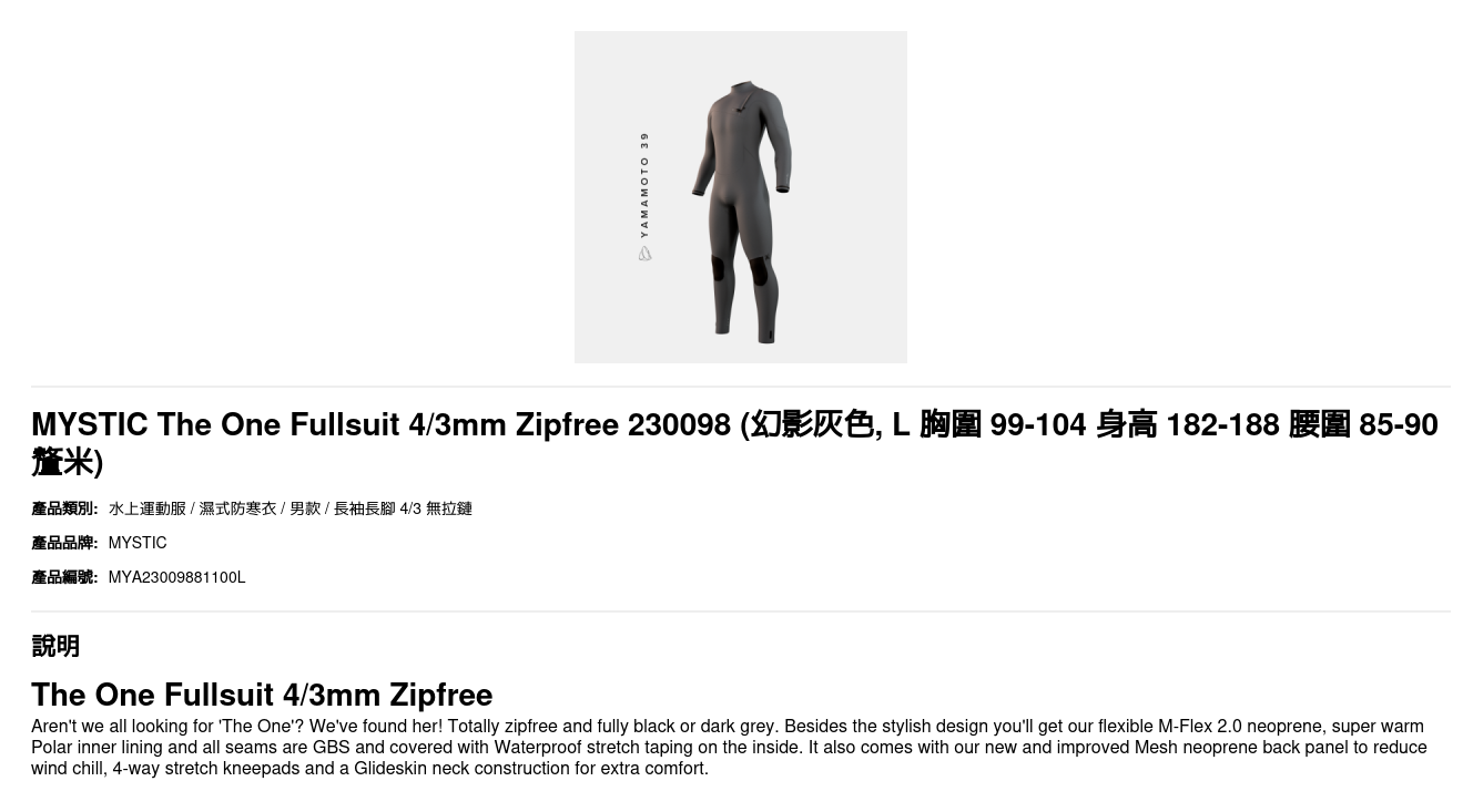 MYSTIC The One Fullsuit 4/3mm Zipfree 230098