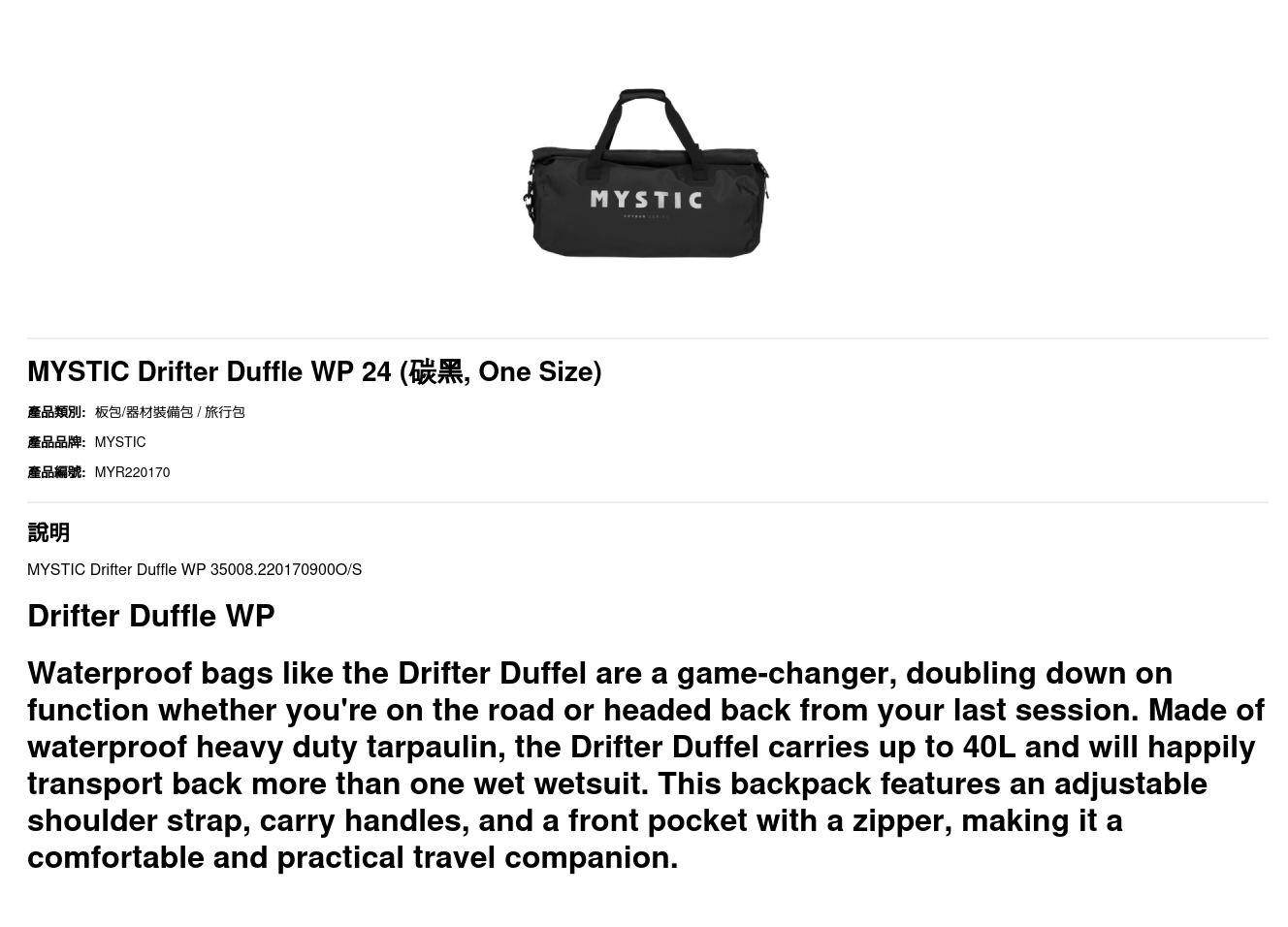 MYSTIC Drifter Duffle WP 35008.220170900O/S