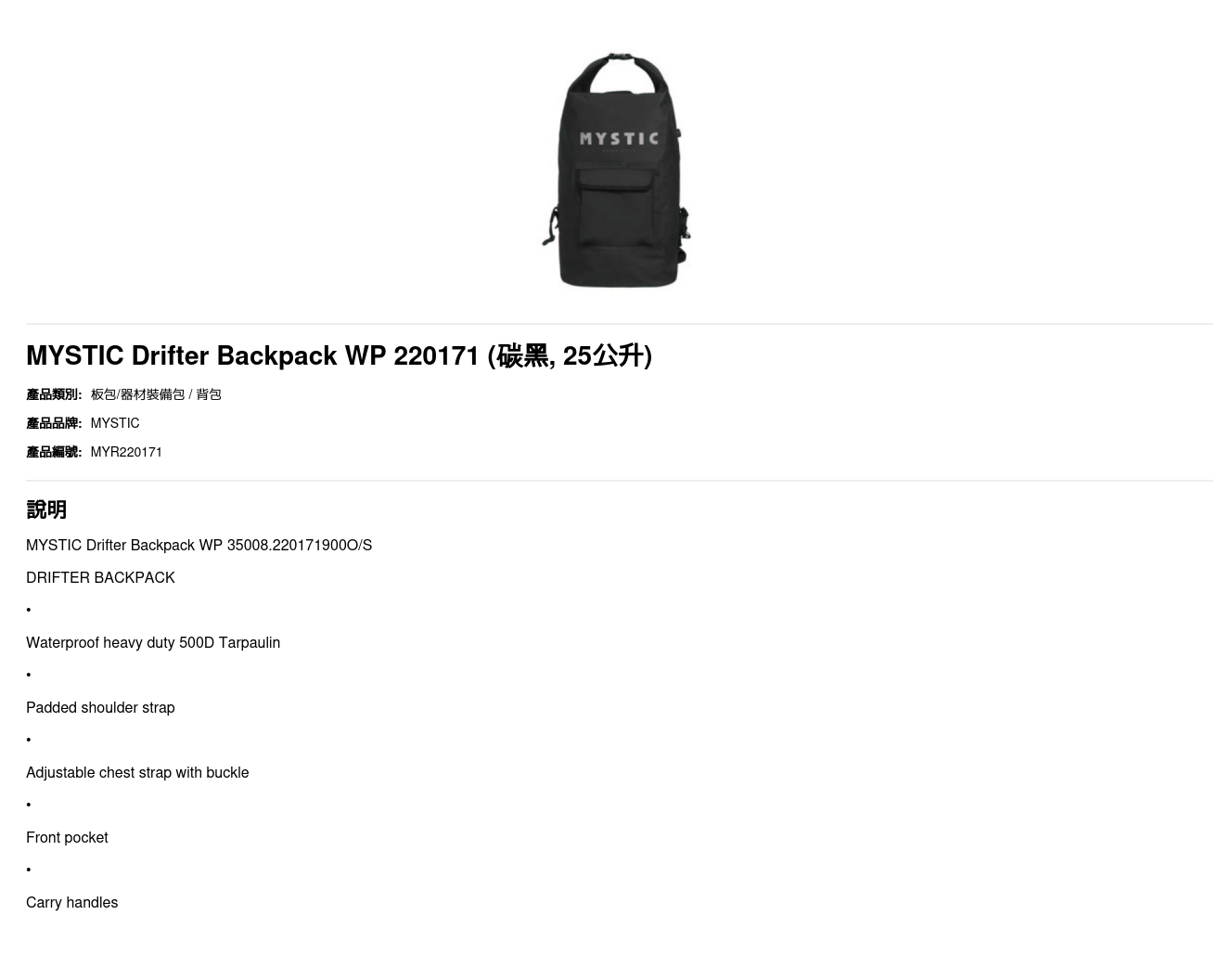| 尺碼 | 25公升 |