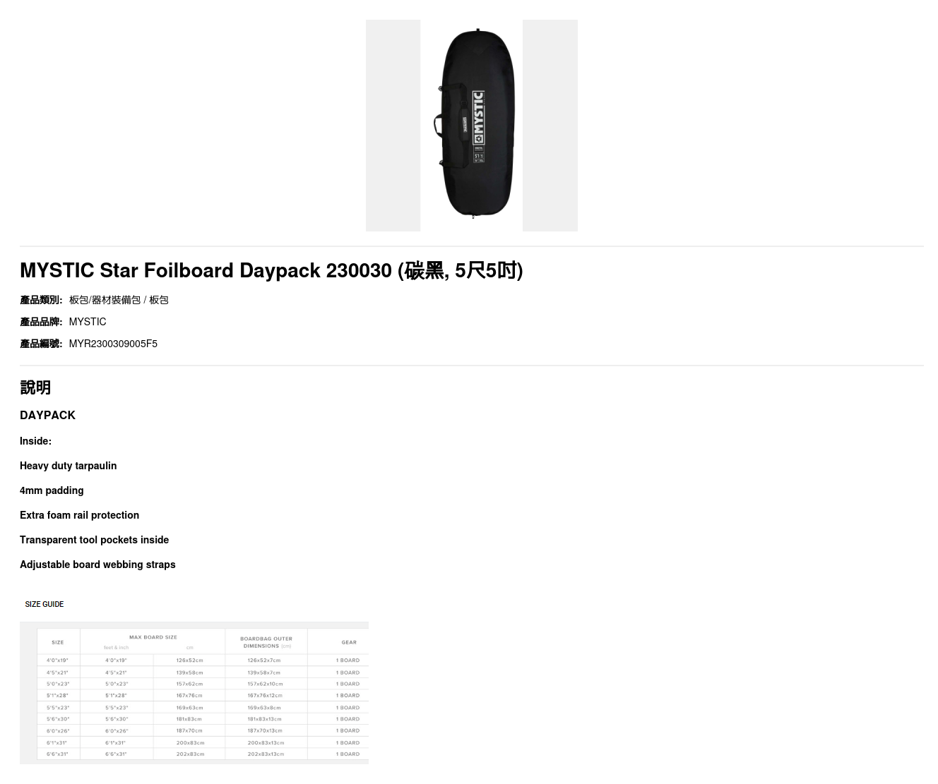 | 尺碼 | 5尺, 5尺1吋, 5尺5吋, 5尺6吋, 6尺 |