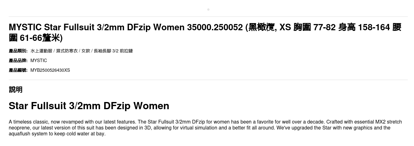 | 尺碼 | XS 胸圍 77-82 身高 158-164 腰圍 61-66釐米, S 胸圍 82-88 身高 163-169 腰圍 65-71釐米, M 胸圍 87-93 身高 164-172 腰圍 69-75釐米, L 胸圍 92-99 身高 170-175 腰圍 75-82釐米, XL 胸圍 100 身高 175-180 腰圍 82釐米 |