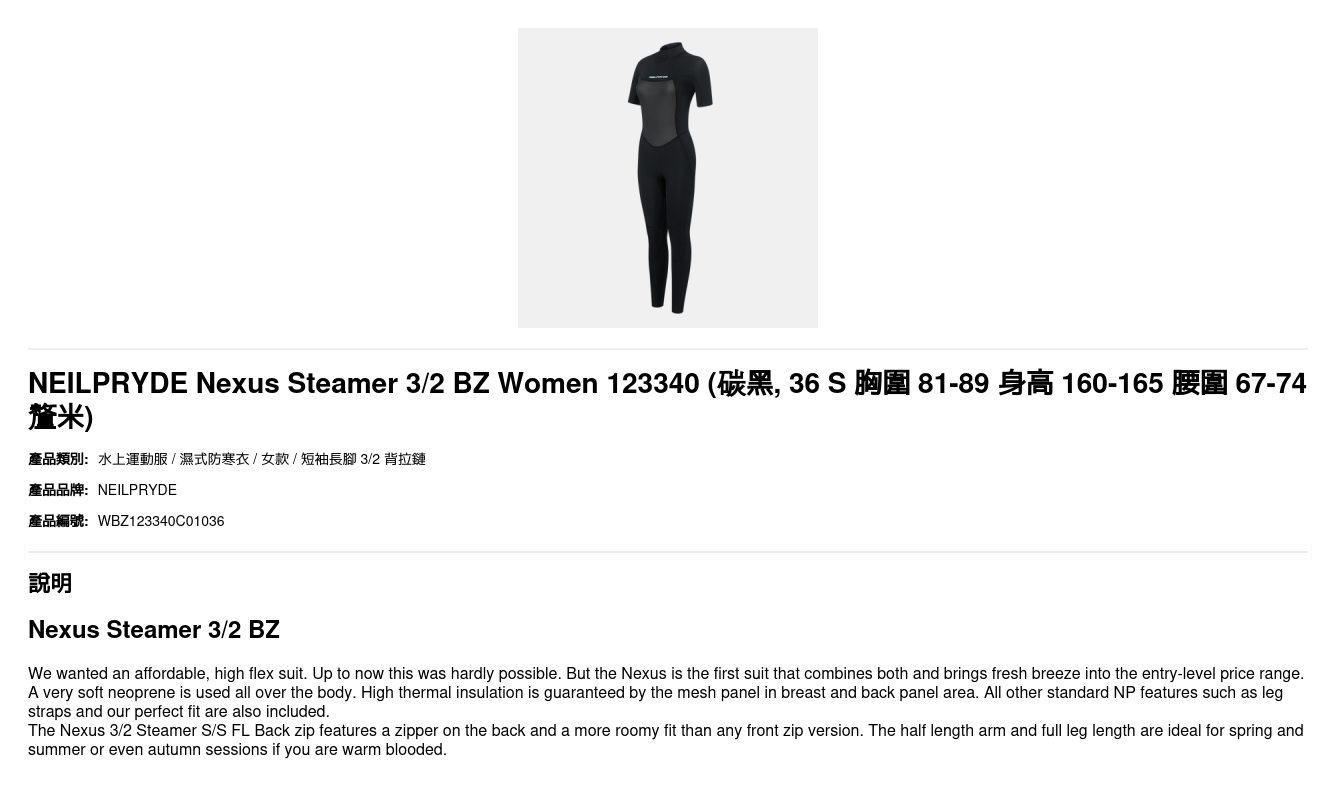 尺碼 36 S 胸圍 81-89 身高 160-165 腰圍 67-74釐米, 38 M 胸圍 86-94 身高 165-170 腰圍 72-79釐米, 40公升 胸圍 91-99 身高 170-175 腰圍 77-84釐米