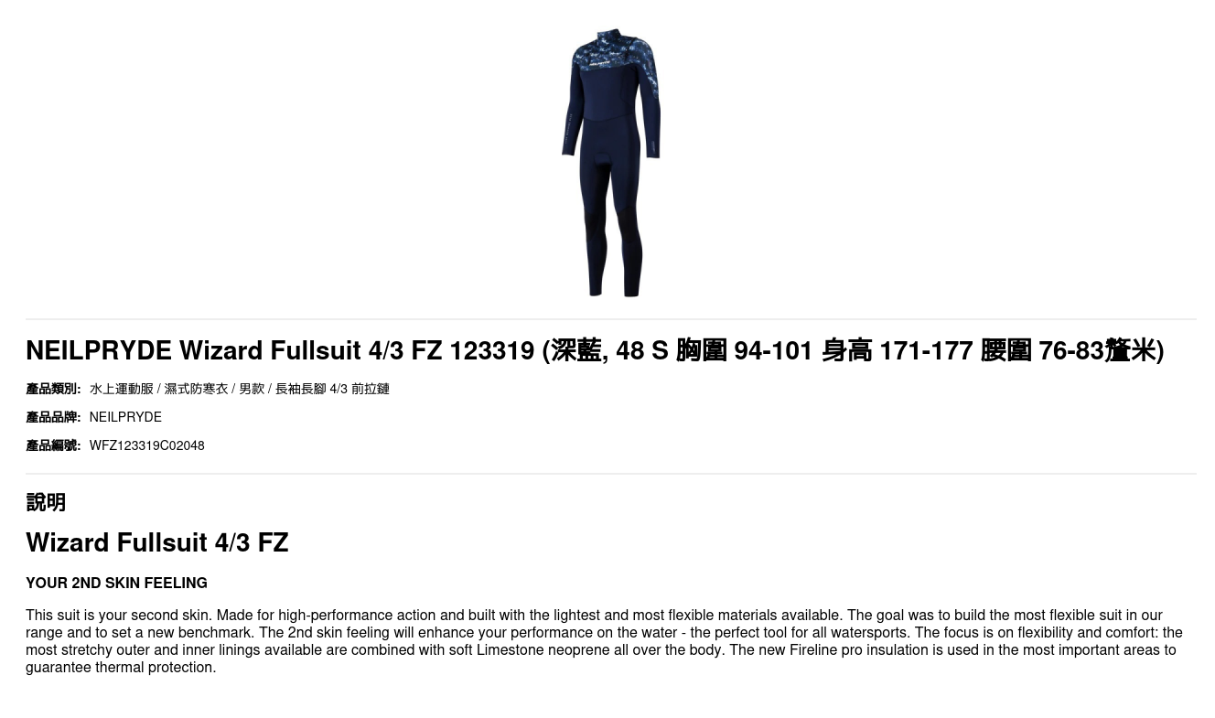 NEILPRYDE Wizard Fullsuit 4/3 FZ 123319