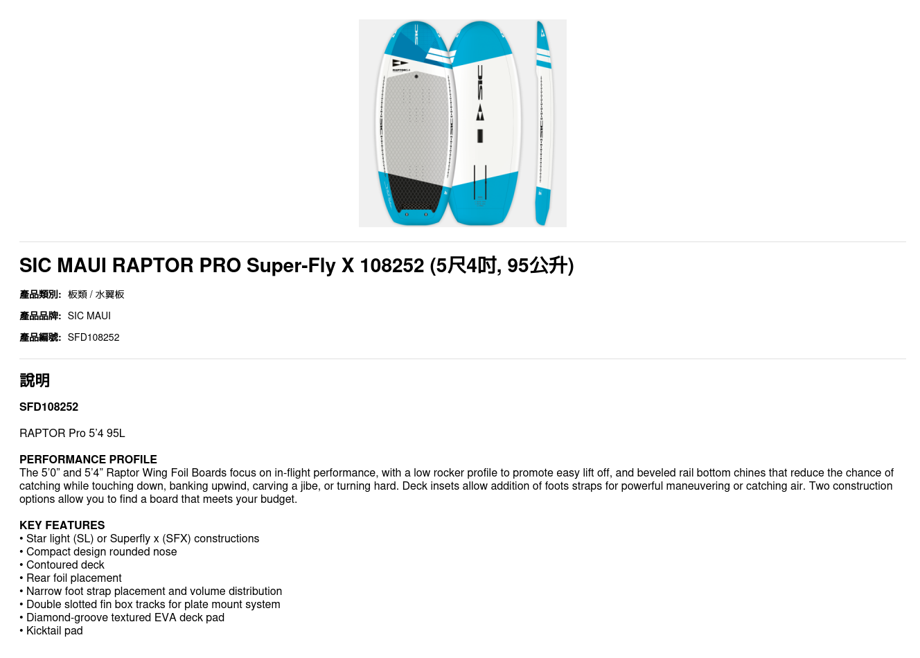 SIC MAUI RAPTOR PRO Super-Fly X 5'4 95L 108252
