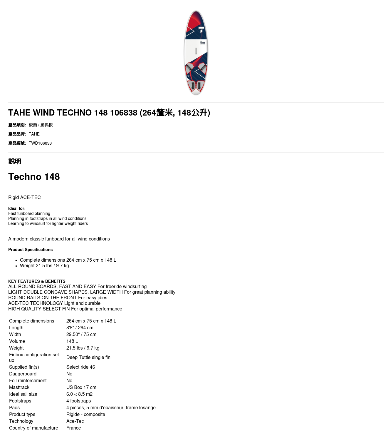 | Ideal sail size | 6.0 < 8.5 m2 |