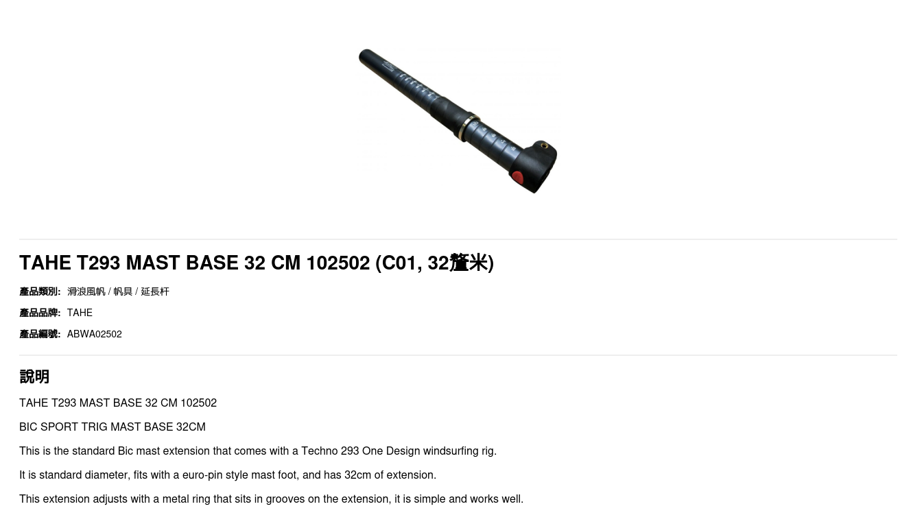 This is the standard Bic mast extension that comes with a Techno 293 One Design windsurfing rig.