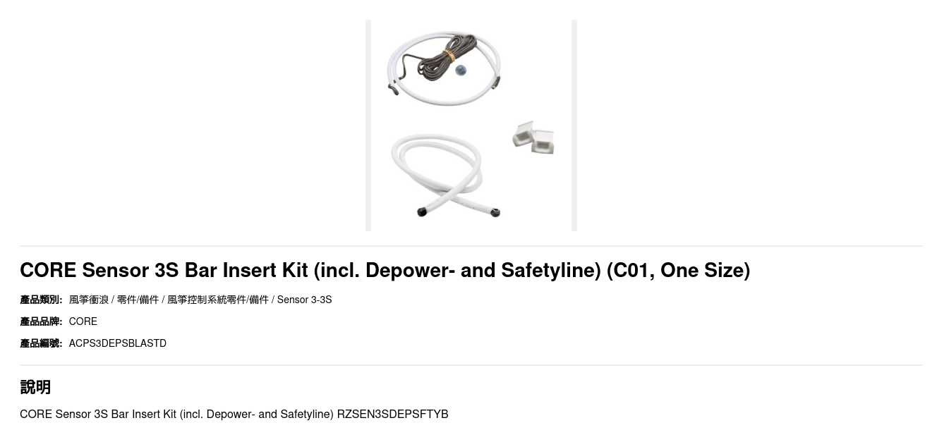 CORE Sensor 3S Bar Insert Kit (incl. Depower- and Safetyline) RZSEN3SDEPSFTYB