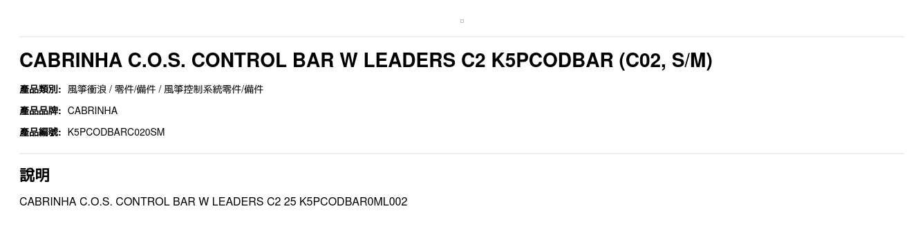 HOME / PRODUCTS / CABRINHA C.O.S. CONTROL BAR W LEADERS C2 K5PCODBAR