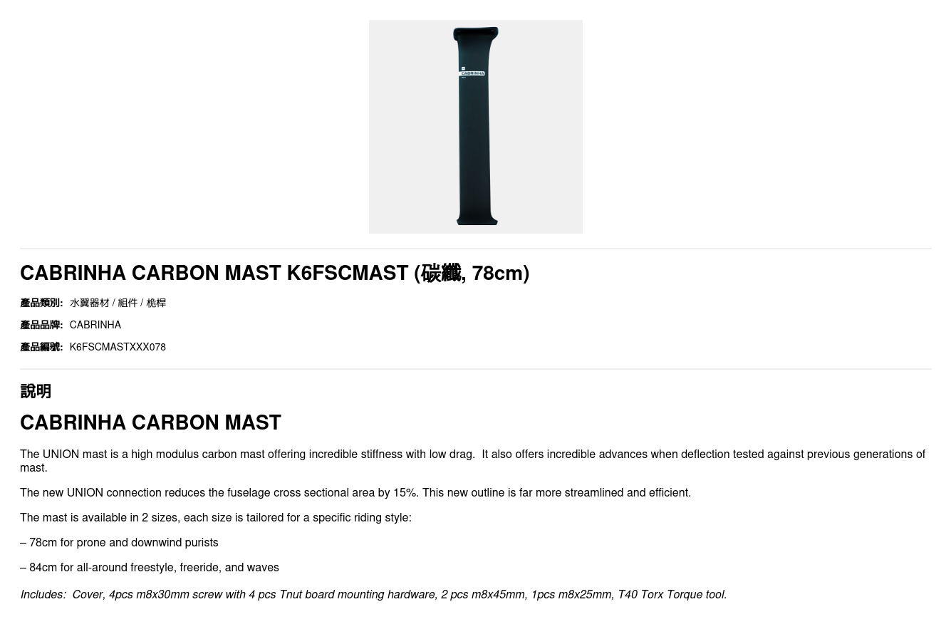 CABRINHA CARBON MAST K6FSCMAST