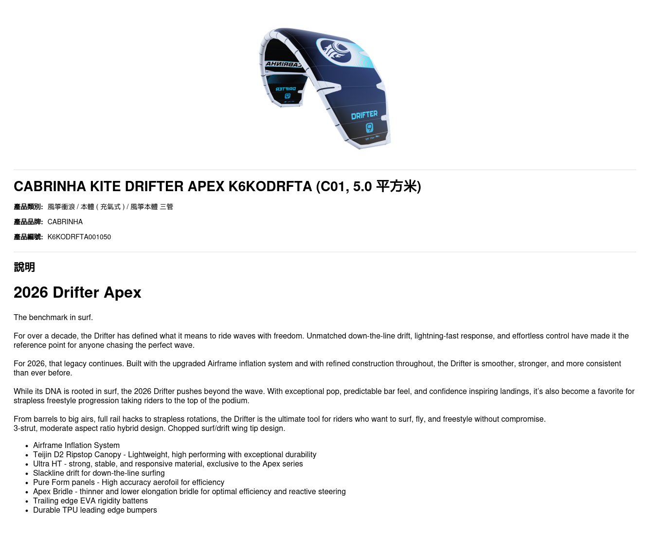 CABRINHA KITE DRIFTER APEX K6KODRFTA