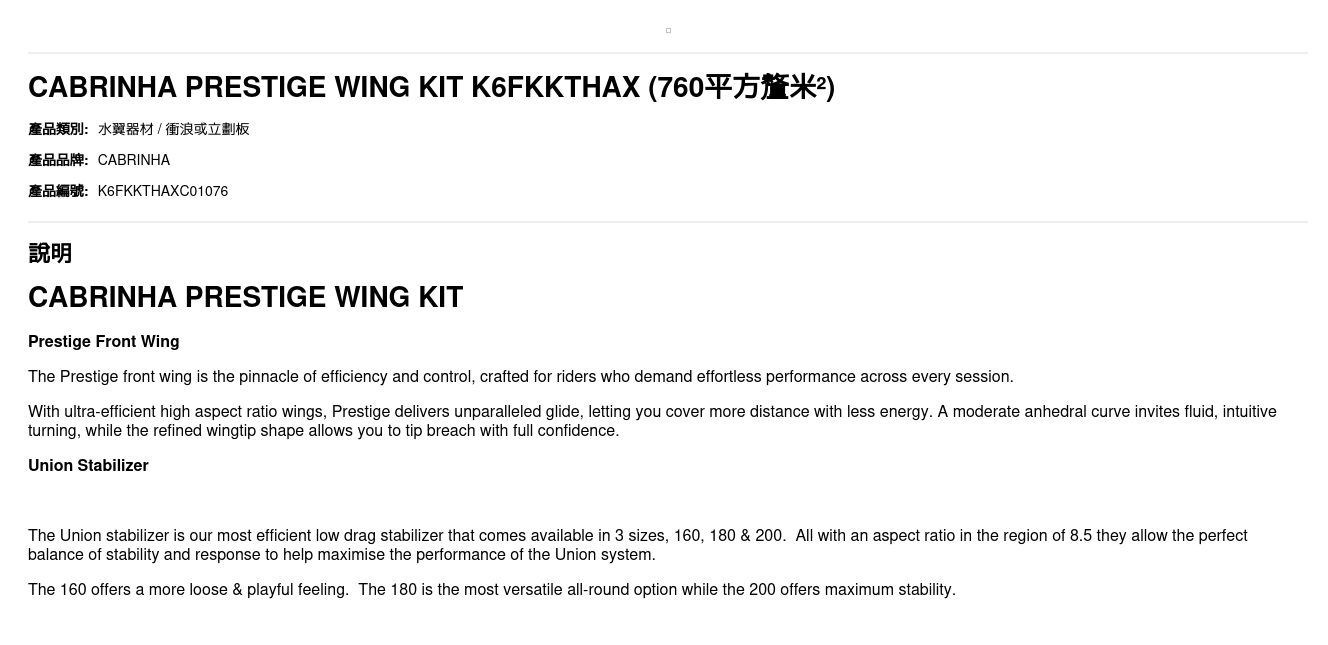 HOME / PRODUCTS / CABRINHA PRESTIGE WING KIT K6FKKTHAX