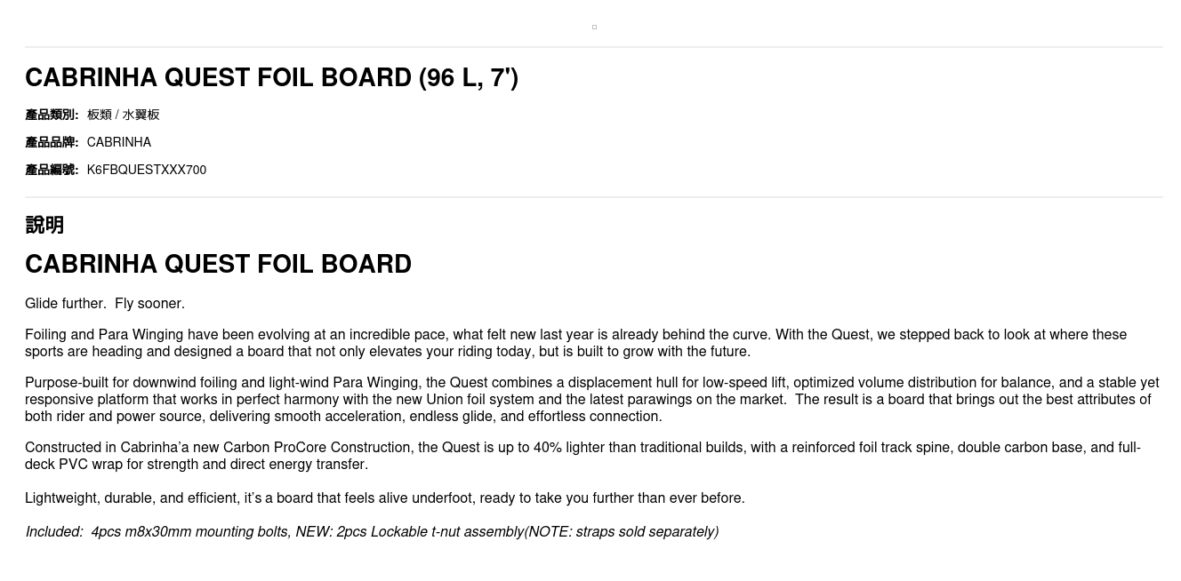 CABRINHA QUEST FOIL BOARD K6FBQUEST700XXX