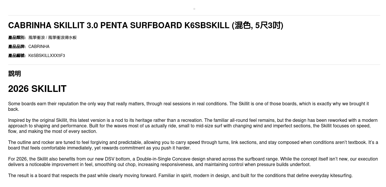 CABRINHA SKILLIT 3.0 PENTA SURFBOARD K6SBSKILL