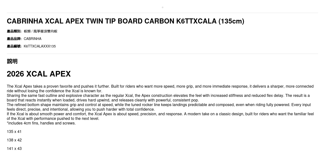CABRINHA XCAL APEX TWIN TIP BOARD CARBON K6TTXCALA